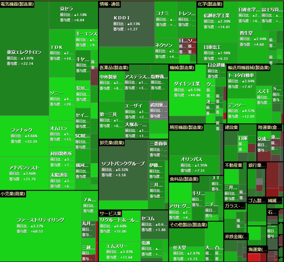 個別株もほぼ、全面高。