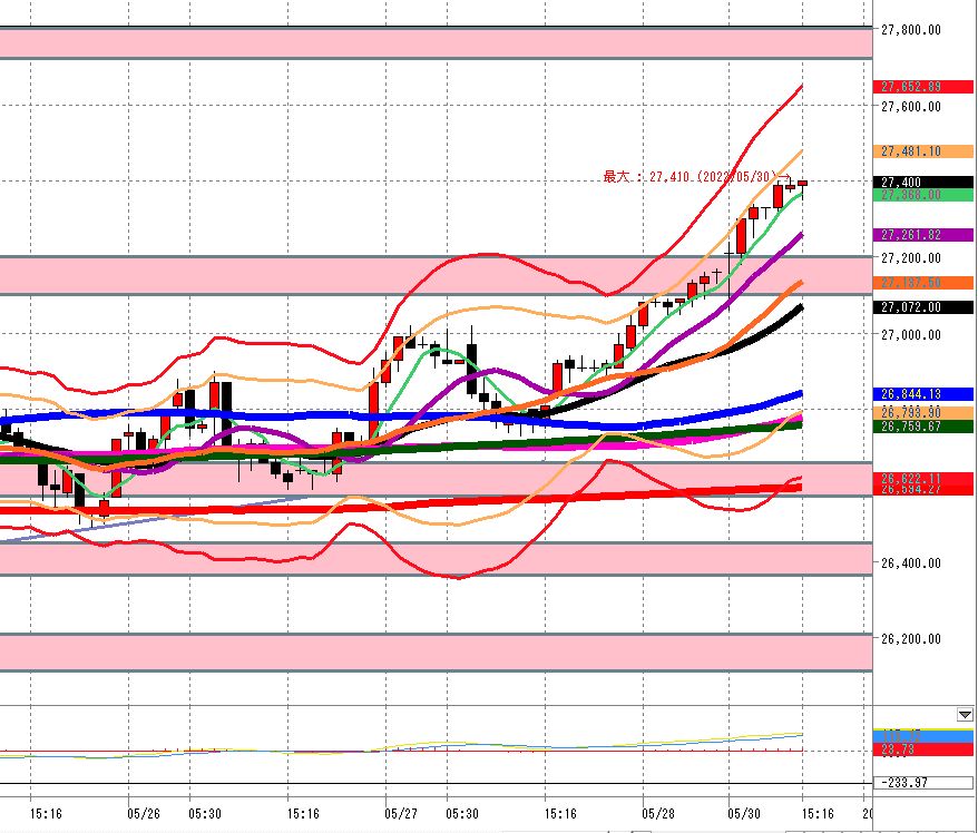 25日移動平均線や75日移動平均線の上です。