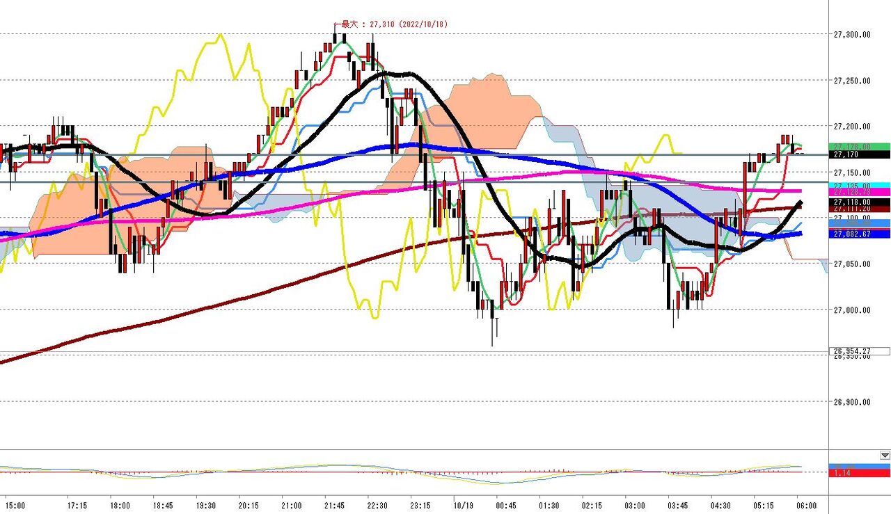 こちらも、25本移動平均線(黒)と75本移動平均線(青)の上です。