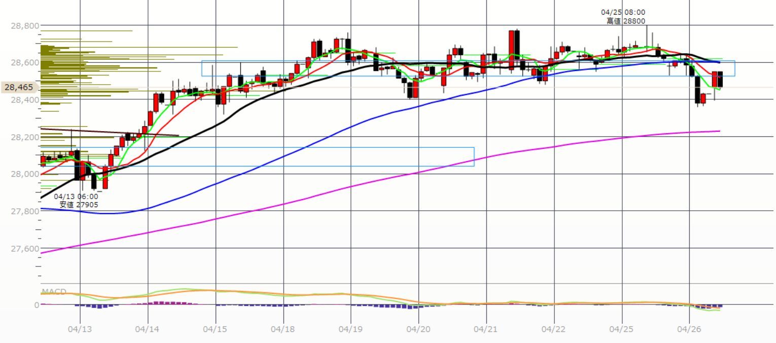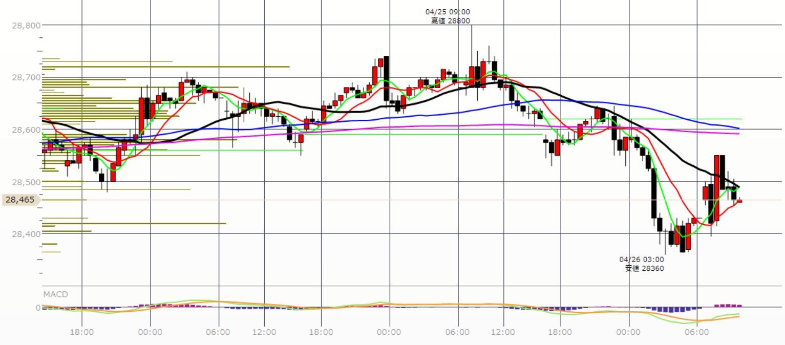 25本移動平均線(黒)を一旦上抜けましたが、