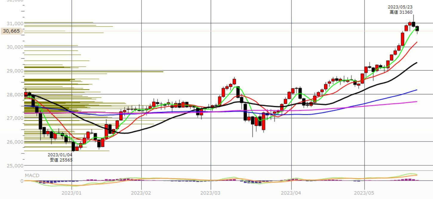 5日移動平均線は、まだ上向きです。