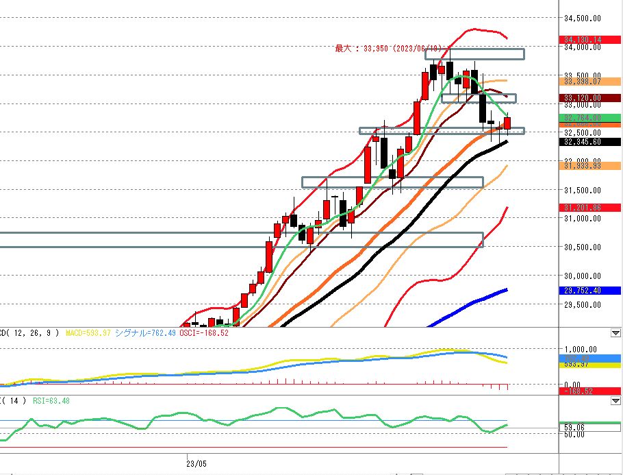 一旦、75本移動平均線(青)まで試しに行きましたが、