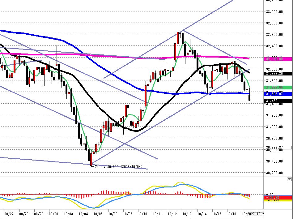 25本移動平均線(黒)を割ったら売り転換を考える。