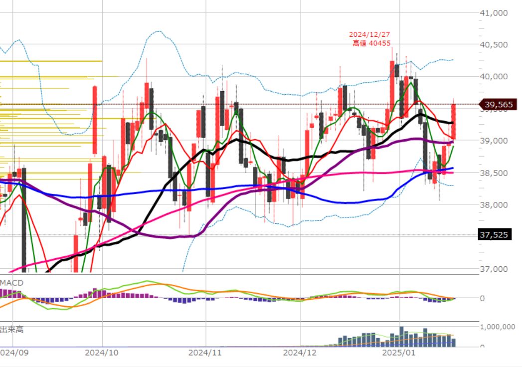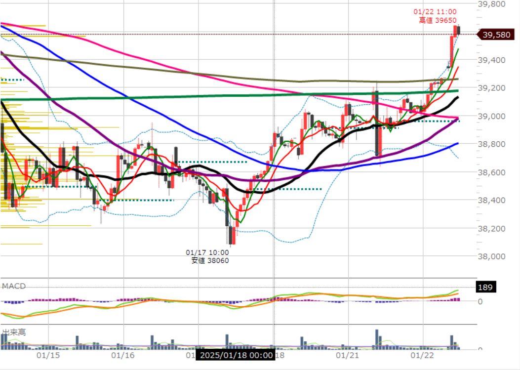 主要な移動平均線をぶち抜いていきました。