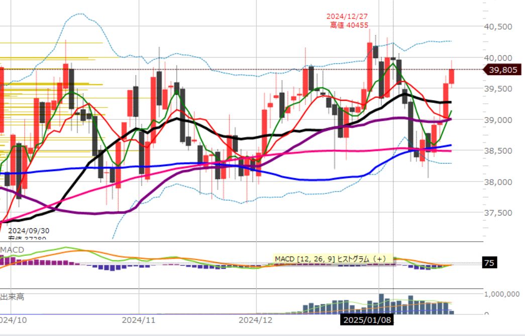 強い流れですが、4万円でどうなるかですね。