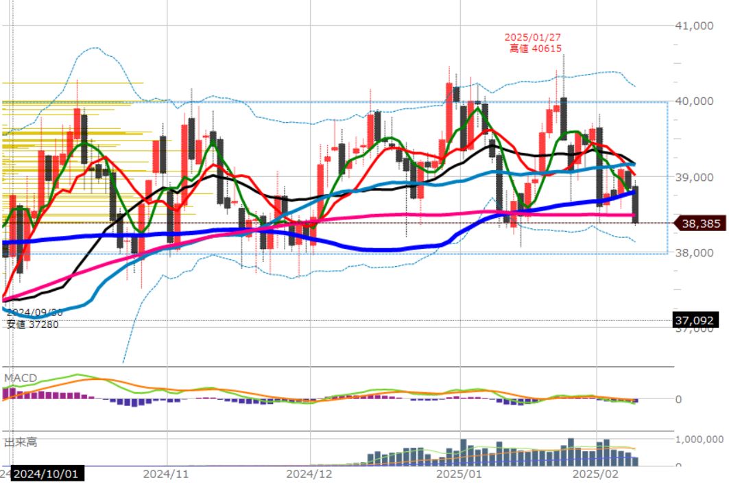 主要な移動平均線の下です。