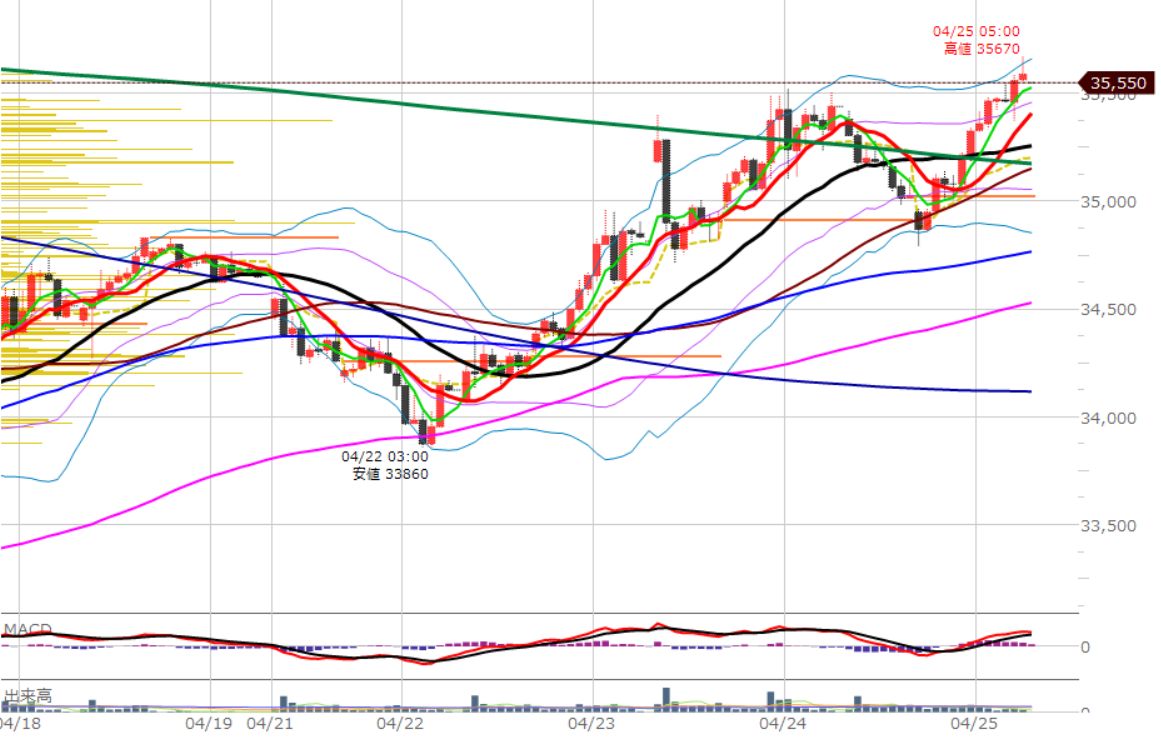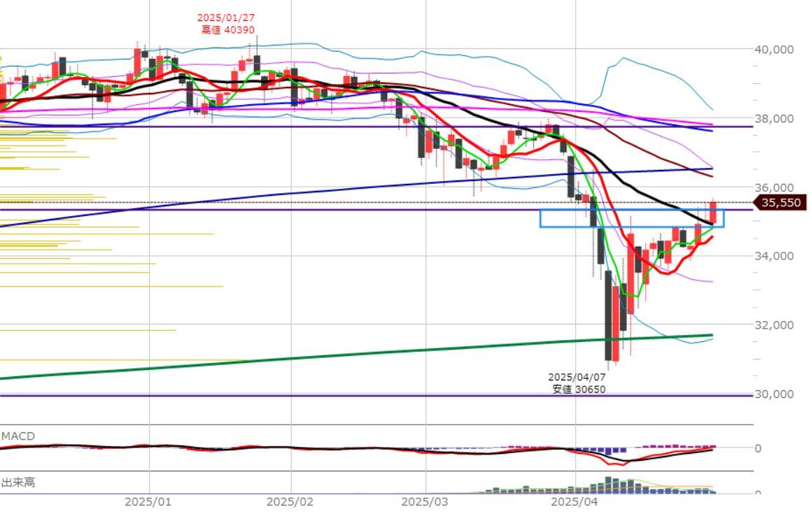 何だかんだで主要な移動平均線の上に出ました。