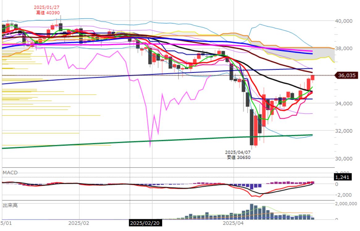 25日移動平均線の上、50日移動平均線が迫ってきました。