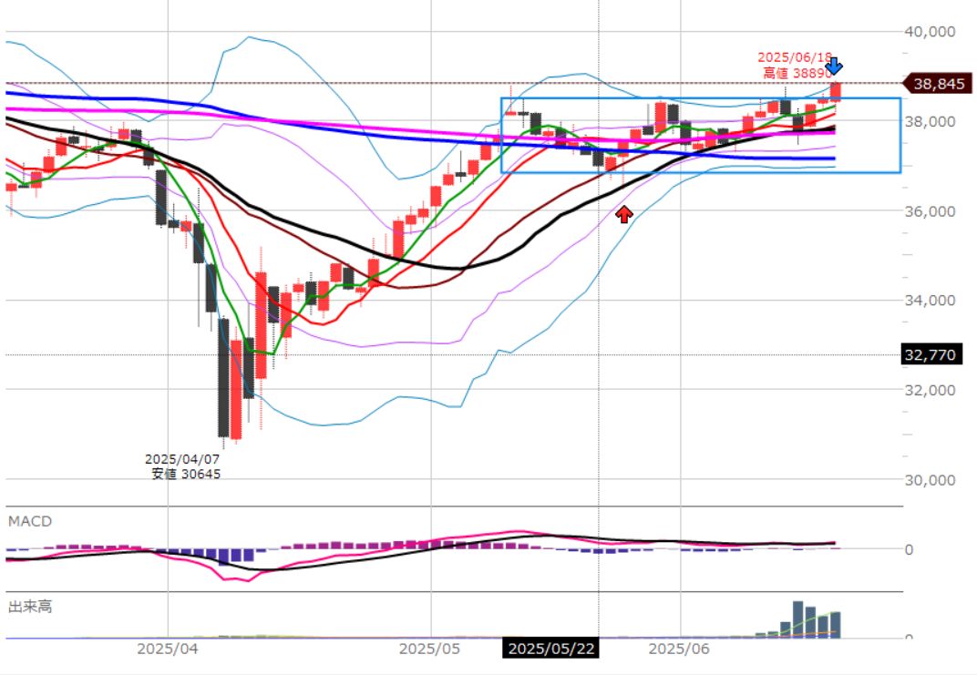 主要な移動平均線の上で、レンジ相場も抜けてきました。