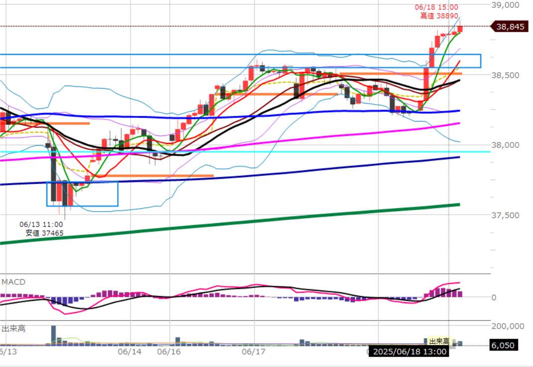 細かくは25本移動平均線(黒)の上は買い。下は売り。