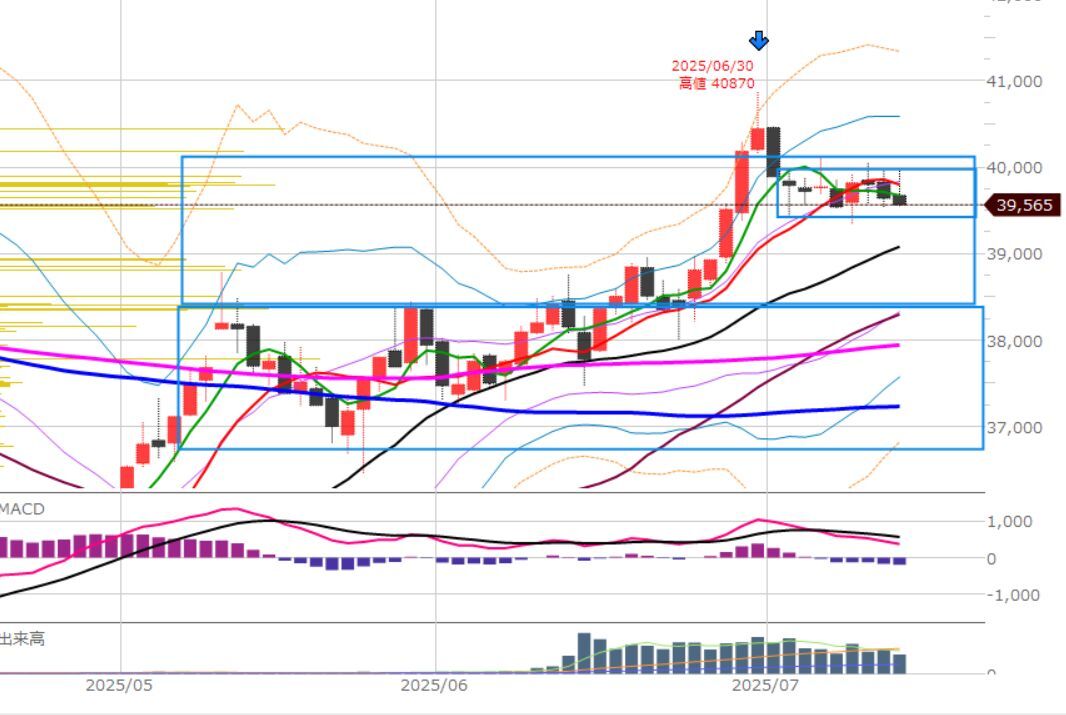 また、主要な移動平均線の下ですが、ボックスレンジ内。