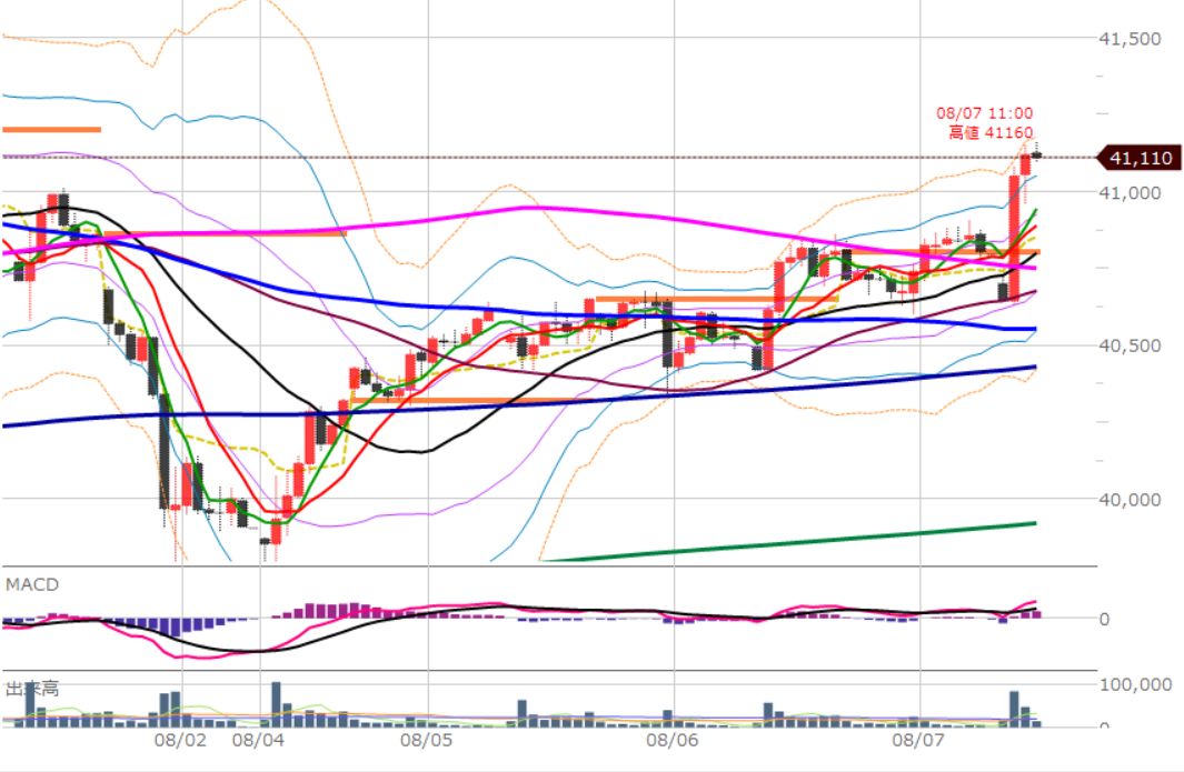 一気に10日移動平均線の上に出ました。