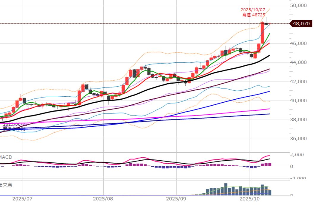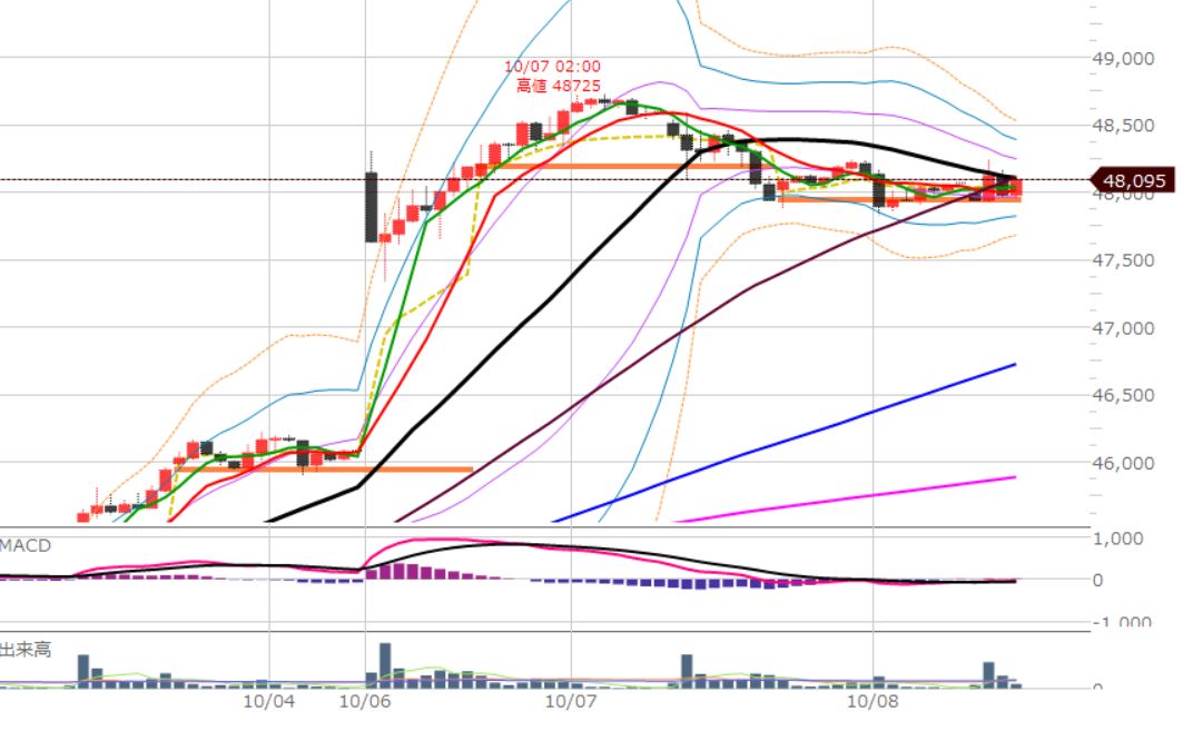 細かくは25本移動平均線(黒)の上は買い。下は売り。