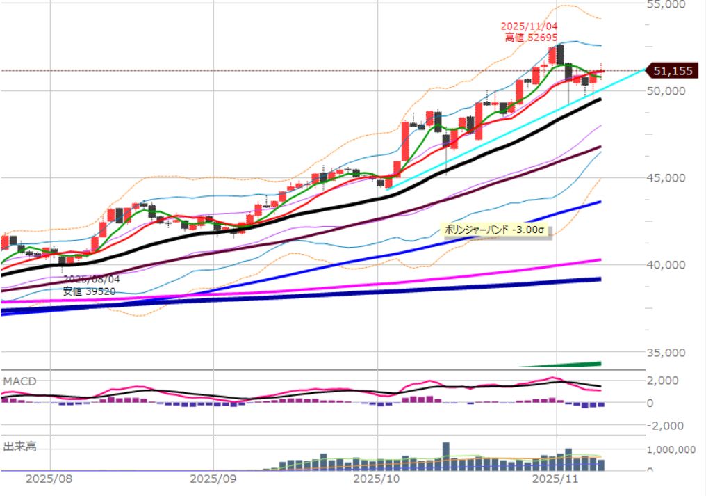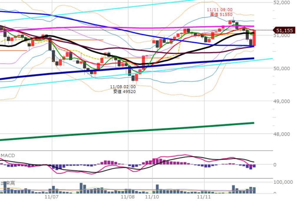 細かくは25本移動平均線(黒)の上は買い。下は売り。