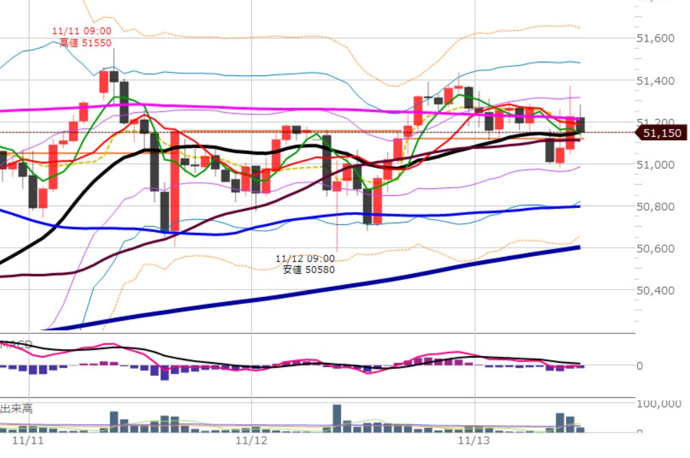 細かくは25本移動平均線(黒)の上は買い。下は売り。