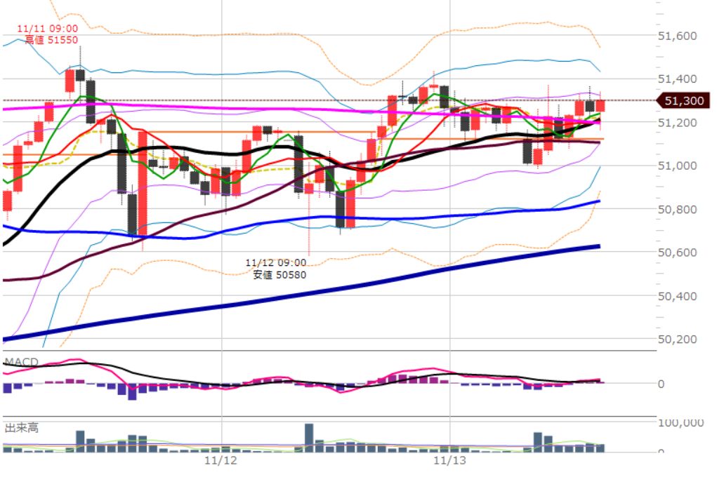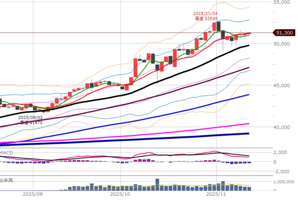 細かくは25本移動平均線(黒)の上は買い。下は売り。