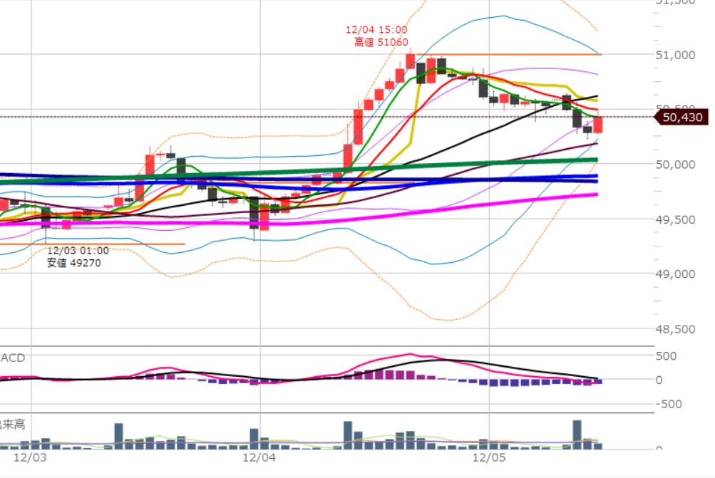 50本移動平均線近辺で買われました。