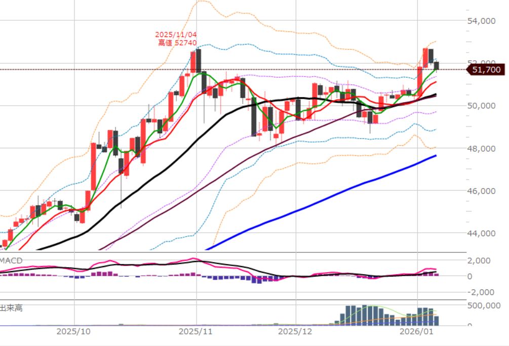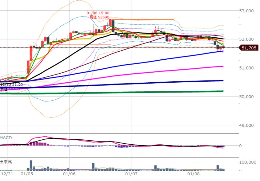 細かくは25本移動平均線(黒)の上は買い。下は売り。