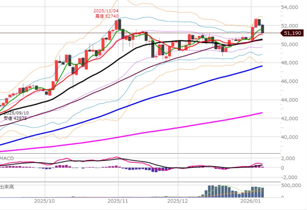 細かくは25本移動平均線(黒)の上は買い。下は売り。
