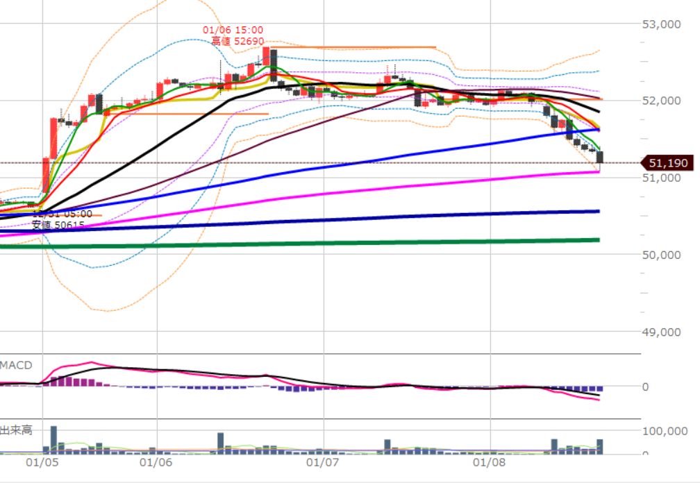 5日移動平均線を割り込みました。