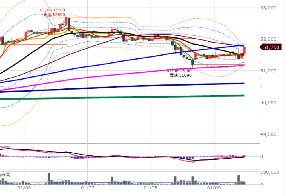 細かくは25本移動平均線(黒)の上は買い。下は売り。
