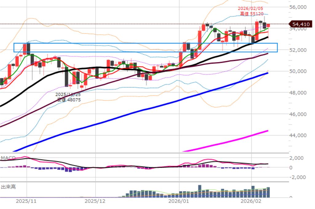 細かくは25本移動平均線(黒)の上は買い。下は売り。